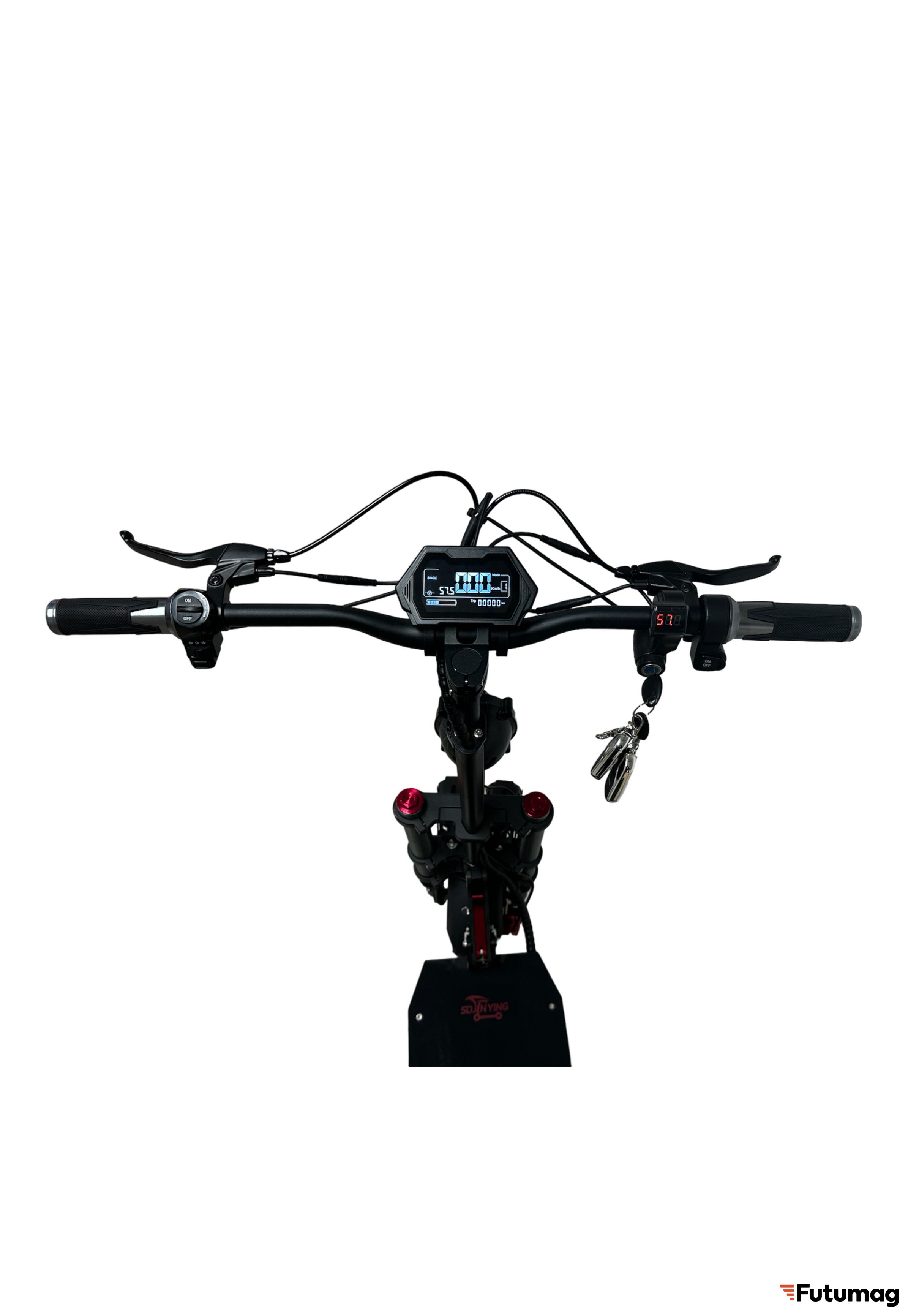 - Тормозная система электросамоката SDJIN G7 это тросиковый дисковый тормоз спереди и сзади, так же рекуперативный тормоз