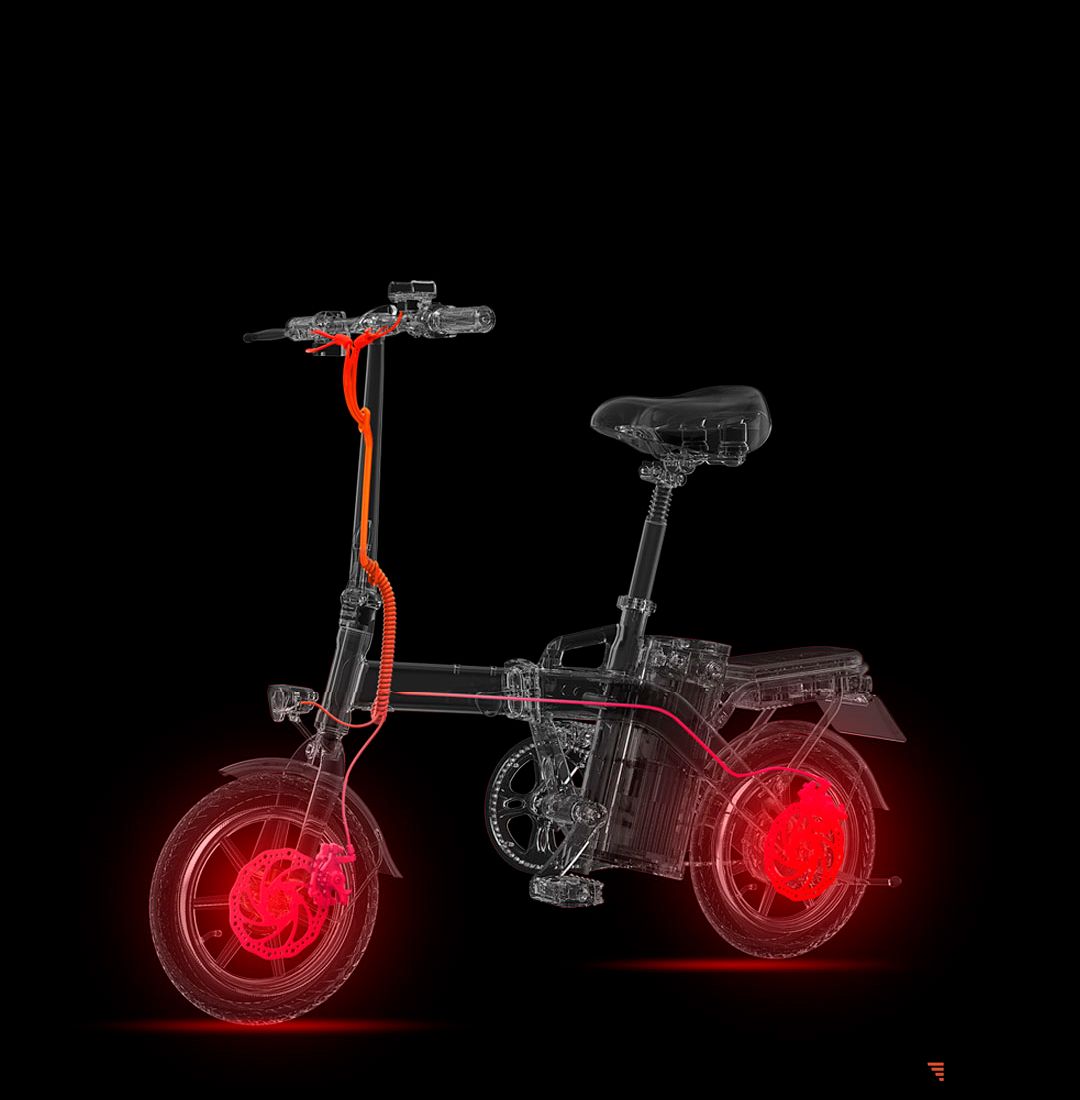 Велосипед получил складывающуюся конструкцию. Руль и сиденье велосипеда регулируются по высоте. Размеры велосипеда такие: 1320х550х1095 мм. Вес новинки равен 25,3 кг, при этом сам велосипед может выдержать до 100 кг веса. Встроеный аккумулятор ёмкостью 12Ah или 15Ah легко снимается для зарядки.