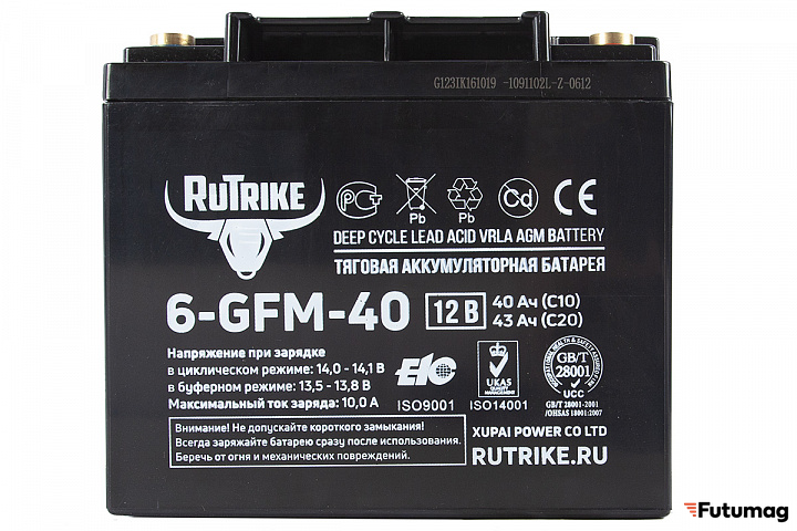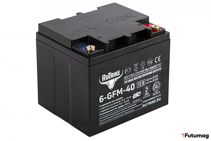 Аккумулятор RuTrike 6-GFM-40 выполнен с использованием технологии AGM, что обеспечивает низкую скорость саморазряда и длительный срок хранения. Утолщенные пластины из многослойного сплава с низкой плотностью кислоты позволяют достигать высоких показателей эффективности в системах резервного питания и накопления энергии.