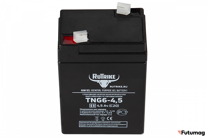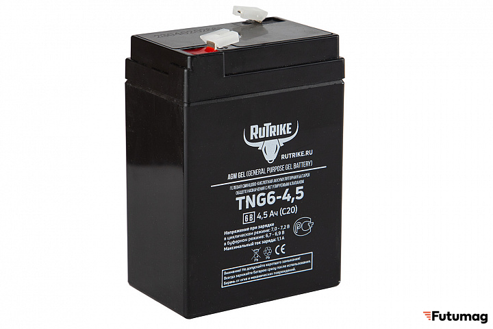 БрендRutrikeЕмкость4500 mAhТипНеобслуживаемый AGM VRLAНапряжение6 VВремя зарядки8 чВес0.72 кгТок зарядки0.25 AДлина70 ммШирина47 ммВысота106 мм -