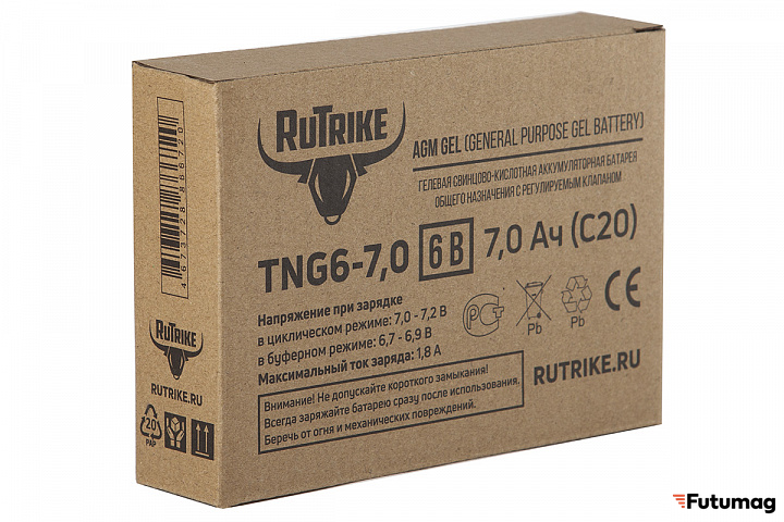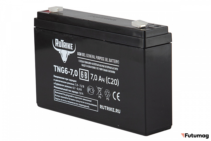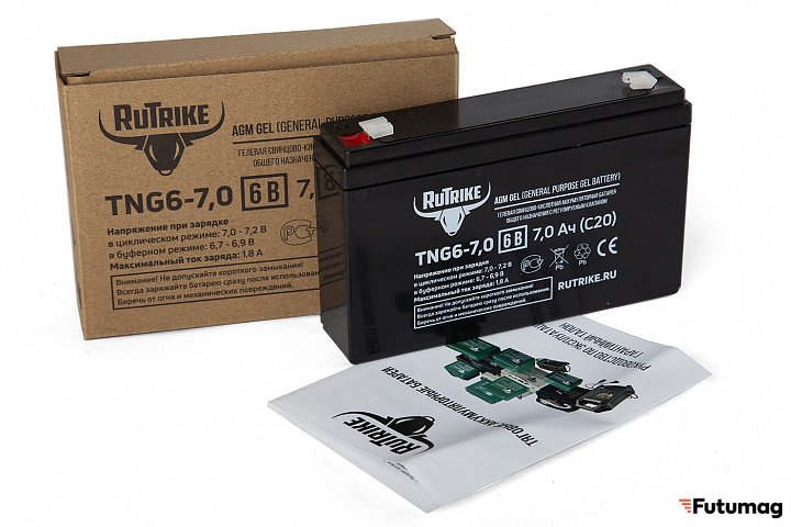БрендRutrikeЕмкость7000 mAhТипНеобслуживаемый AGM VRLAНапряжение6 VВремя зарядки8 чВес1.05 кгТок зарядки0.25 AДлина151 ммШирина35 ммВысота99 мм -