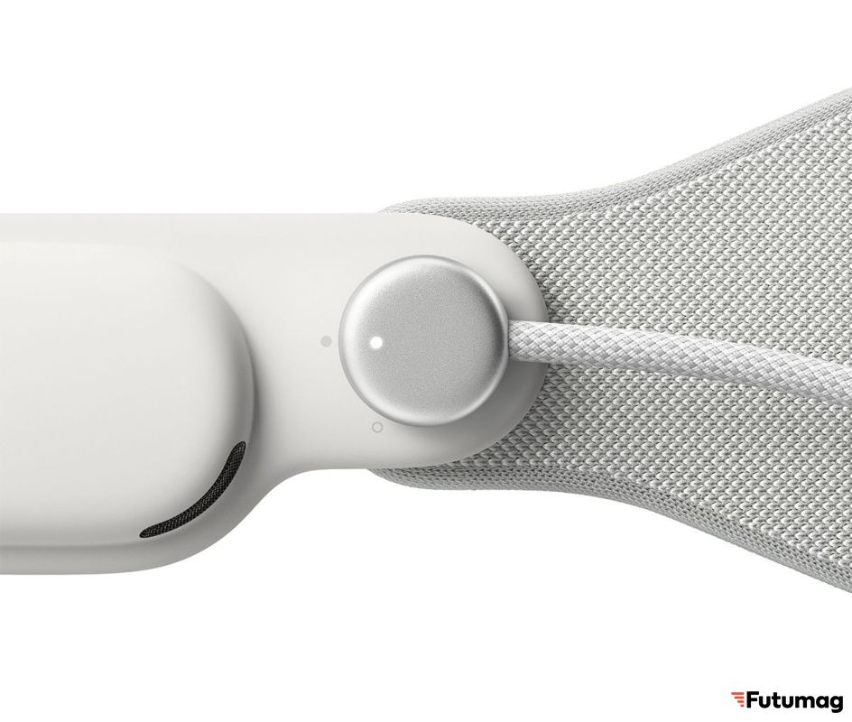 Одним из ключевых элементов для контроля Apple Vision Pro является колёсико Digital Crown, которое также используется во многих других устройствах компании. Оно открывает главный экран и меняет уровень интенсивности погружения в виртуальный мир. Сверху также есть кнопка для съёмки роликов и фотографий.
