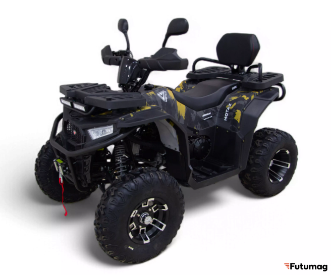 MOTAX GRIZLIK W200 LUX оснащен защитой рук и зеркалами заднего вида, что повышает уровень безопасности для водителя. Дополнительные функции, такие как фаркоп, позволяют использовать квадроцикл для транспортировки различных грузов, что делает его многофункциональным транспортным средством.