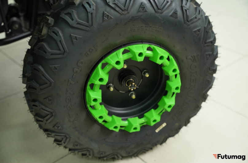 Высота сиденья в 820 мм делает квадроцикл удобным для райдеров различного роста. Дисковые тормоза спереди и вентилируемые гидравлические диски сзади обеспечивают надежное торможение, что особенно важно для безопасности на дороге.