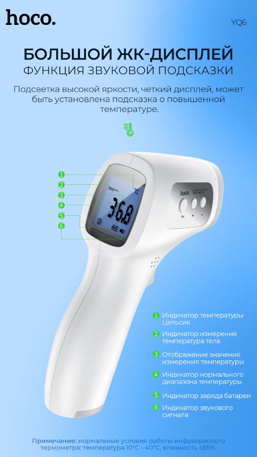 Купить Бесконтактный инфракрасный термометр HOCO YQ6 PREMIUM !