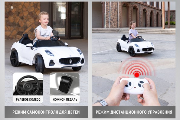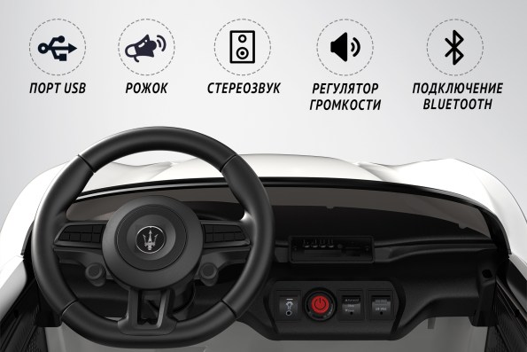 Контроллер на 12V гарантирует стабильную работу электромобиля, а наличие Bluetooth и разъемов для USB и MP3-плеера позволяет подключать любимую музыку, что делает поездку еще более увлекательной.