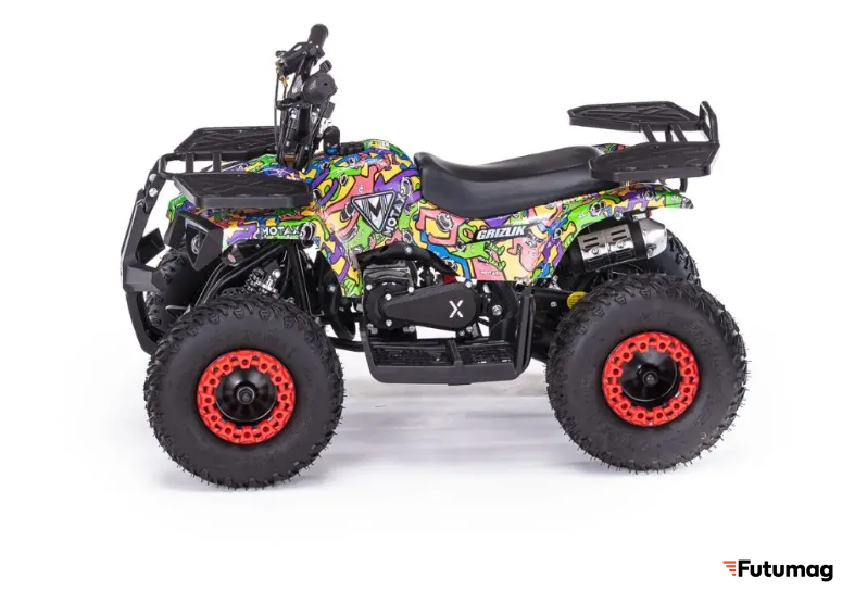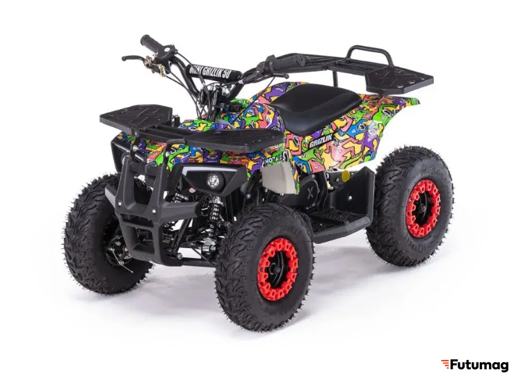 MOTAX GRIZLIK MINI ES BW предлагает ряд практичных решений для хранения: передний и задний багажники позволяют удобно размещать необходимые вещи во время поездок. Хотя квадроцикл не имеет зеркал заднего вида или поворотников, его простота в использовании делает его идеальным для детей.