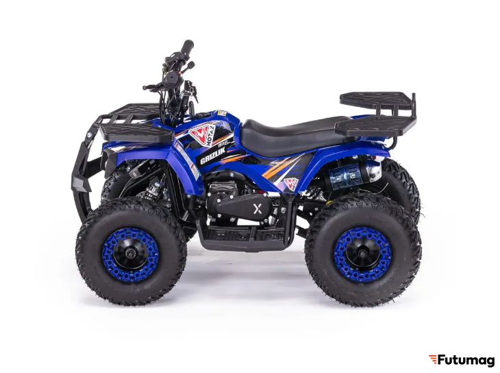 MOTAX GRIZLIK MINI ES BW предлагает ряд практичных решений для хранения: передний и задний багажники позволяют удобно размещать необходимые вещи во время поездок. Хотя квадроцикл не имеет зеркал заднего вида или поворотников, его простота в использовании делает его идеальным для детей.