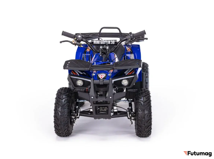 Квадроцикл MOTAX GRIZLIK MINI ES BW — это превосходное средство для активного отдыха детей ростом от 100 до 130 см. С мощностью 3,5 л.с. и 2-х тактным бензиновым двигателем объемом 49 см³, он предлагает отличные характеристики для начинающих райдеров, обеспечивая безопасность и удовольствие от вождения.