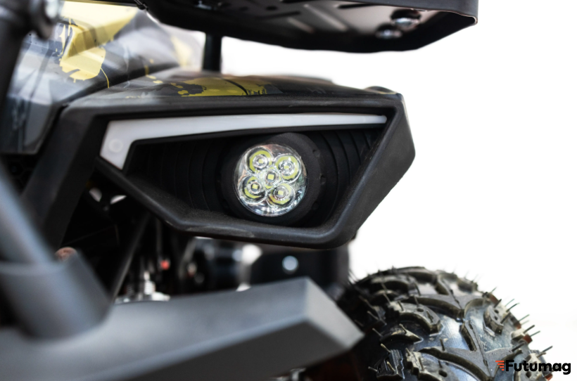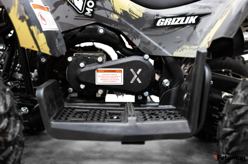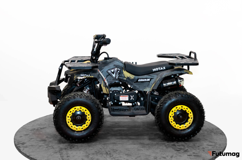 MOTAX GRIZLIK MINI ES BW предлагает ряд практичных решений для хранения: передний и задний багажники позволяют удобно размещать необходимые вещи во время поездок. Хотя квадроцикл не имеет зеркал заднего вида или поворотников, его простота в использовании делает его идеальным для детей.