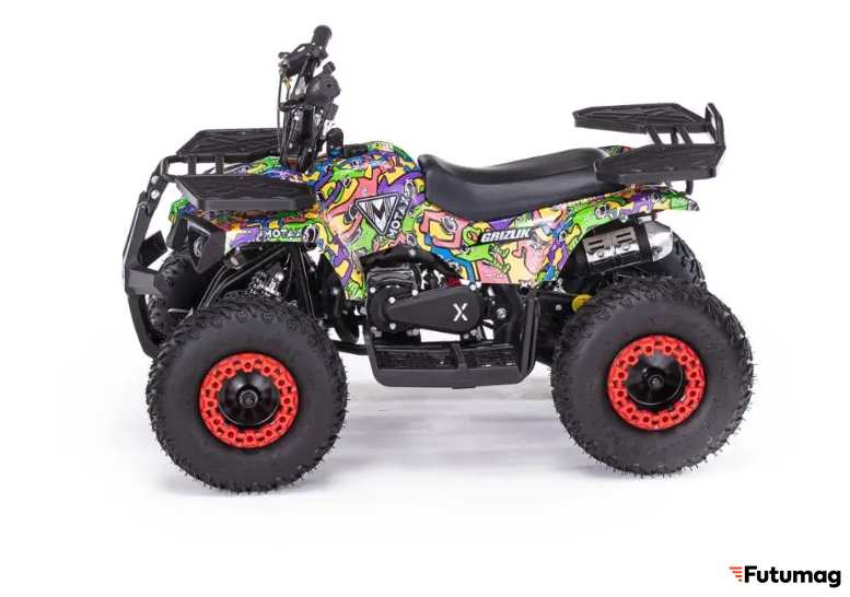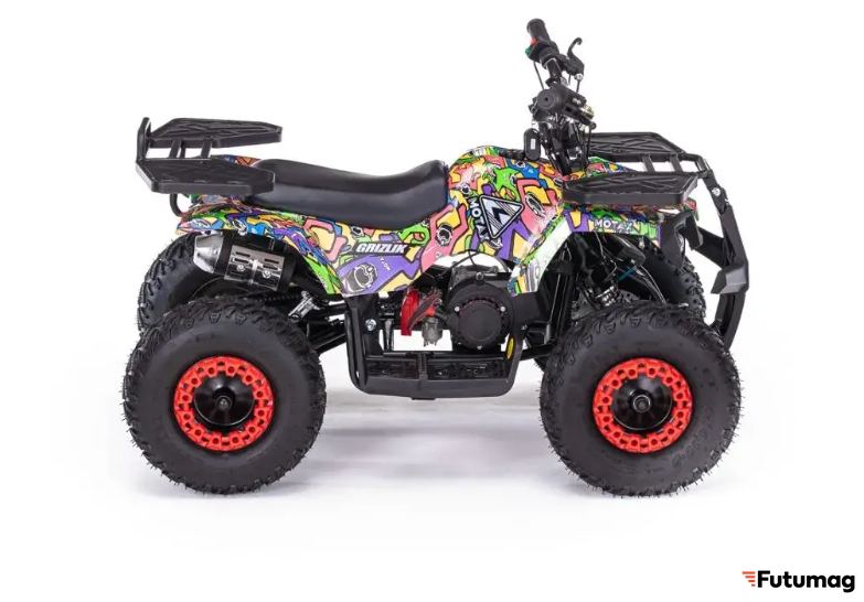 MOTAX GRIZLIK MINI PS предлагает практичные решения для хранения вещей: передний и задний багажники позволяют перевозить необходимые предметы во время поездок. Несмотря на отсутствие некоторых дополнительных функций, таких как зеркала заднего вида и поворотники, квадроцикл остается простым и удобным в использовании.
