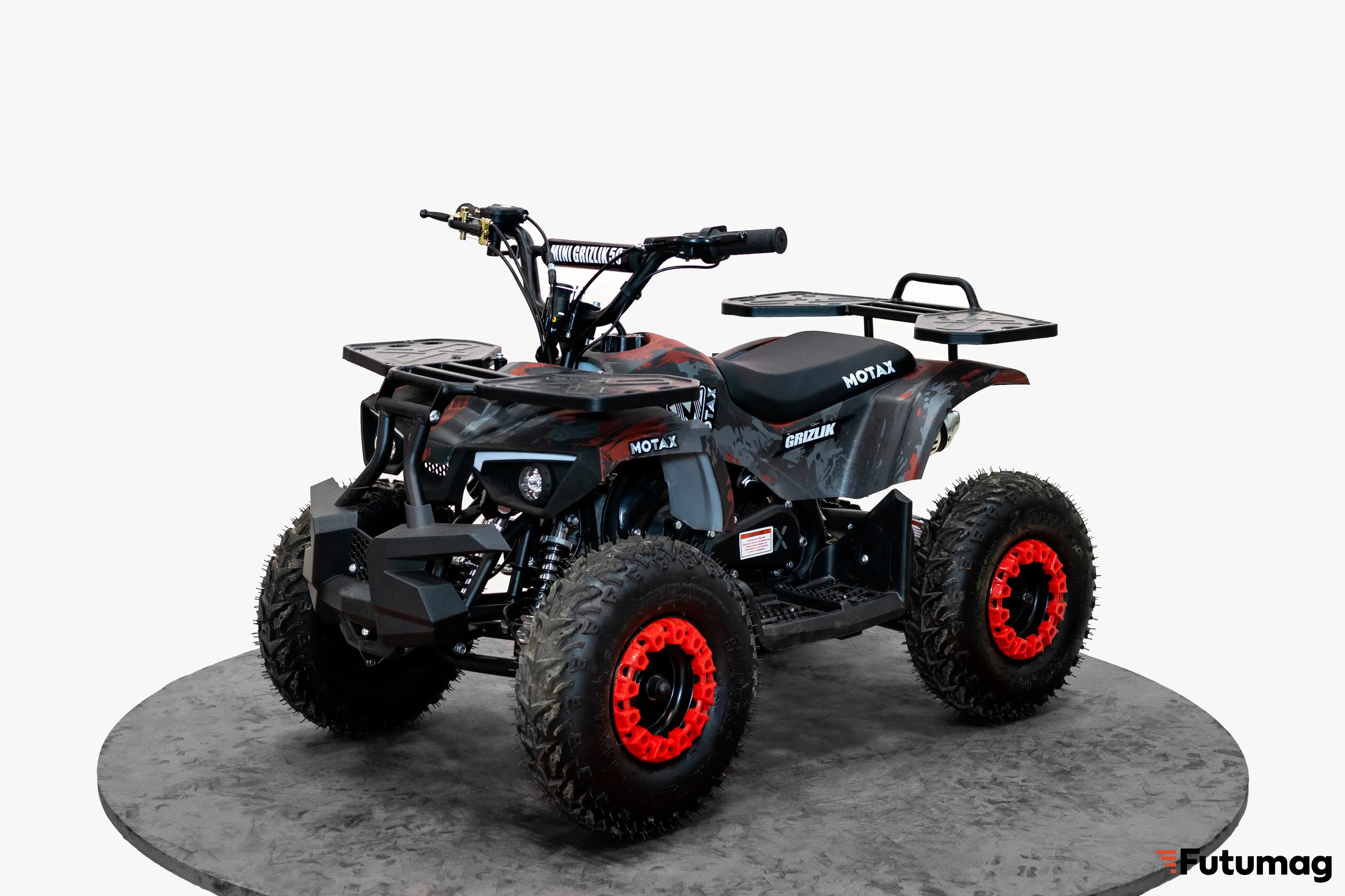 MOTAX GRIZLIK MINI PS предлагает практичные решения для хранения вещей: передний и задний багажники позволяют перевозить необходимые предметы во время поездок. Несмотря на отсутствие некоторых дополнительных функций, таких как зеркала заднего вида и поворотники, квадроцикл остается простым и удобным в использовании.