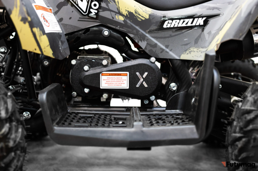 MOTAX GRIZLIK MINI PS предлагает практичные решения для хранения вещей: передний и задний багажники позволяют перевозить необходимые предметы во время поездок. Несмотря на отсутствие некоторых дополнительных функций, таких как зеркала заднего вида и поворотники, квадроцикл остается простым и удобным в использовании.
