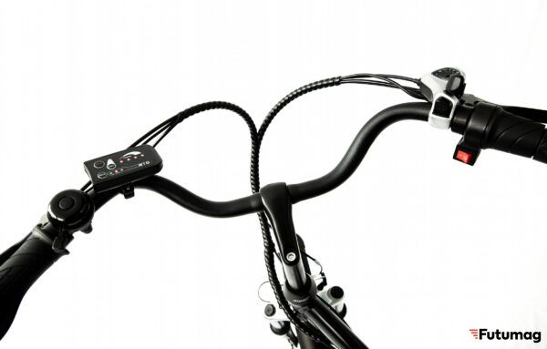 - Спереди установлена вилка, которая сглаживает неровности и позволяет наслаждаться комфортной плавной ездой. А также продлевает срок службы электровелосипеда, снижая воздействия от вибрации и ударов.