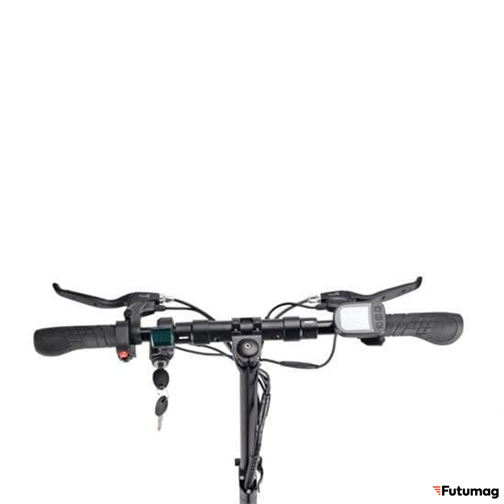 Управление данным транспортом максимально комфортное, благодаря анатомическим грипсам на руле и большому многофункциональному дисплею с «лепестком». На нем отображается текущая скорость и заряд аккумулятора. Показателями можно управлять в процессе движения. Управление газом самоката с помощью «лепестка» безопасно, по сравнению с курком газа. Так же самокат имеет большое сиденье + внутрение амортизаторы сиденья, по сравнению с конкурентами. Что дает ему дополнительный комфорт.