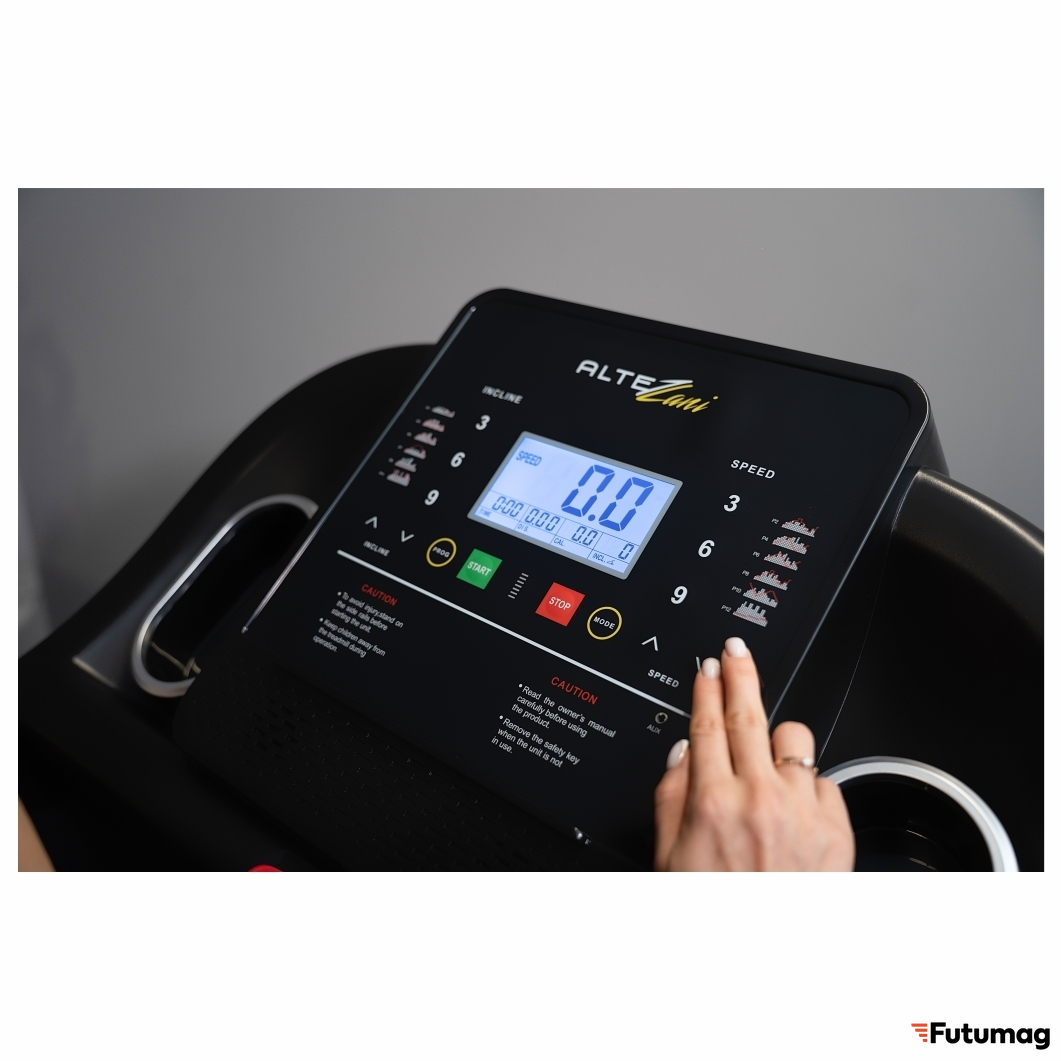 Минимальная скорость1 км/чОтображение текущей скоростиестьОтображение пройденного расстоянияестьОтображение угла наклонаестьДлина118 смШирина72 смВысота128.8 смВес65 кгПроизводительAltezaniМаксимальный вес пользователя125 кгШирина бегового полотна42 смДлина бегового полотна124 смМощность двигателя2.5 л.с.Максимальная скорость18 км/чОтображение расхода калорийестьИзмерение пульсаестьОтображение времениесть -