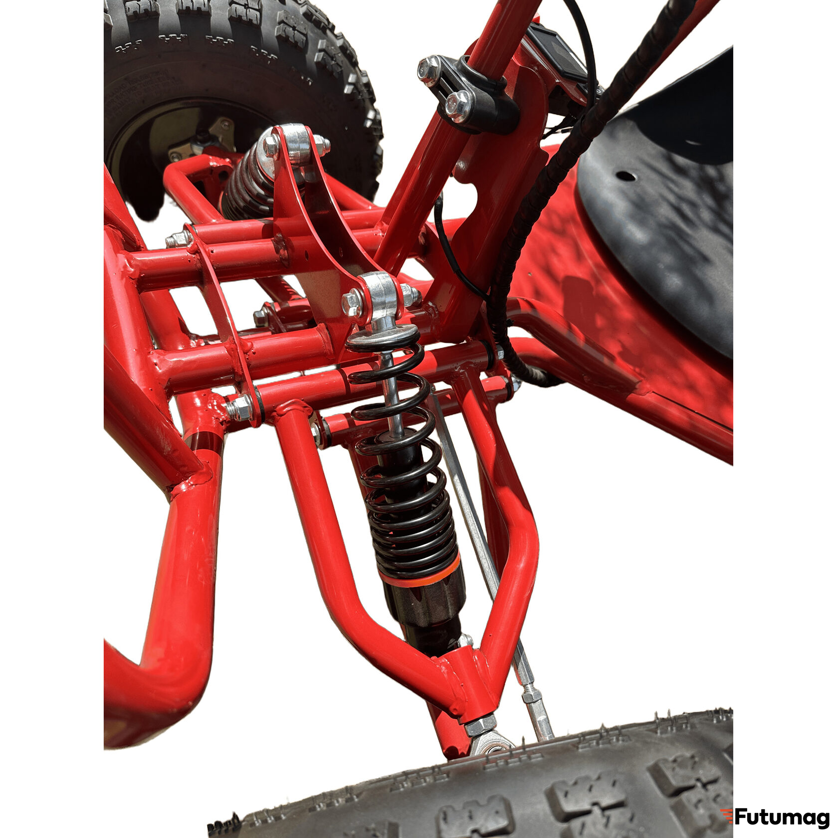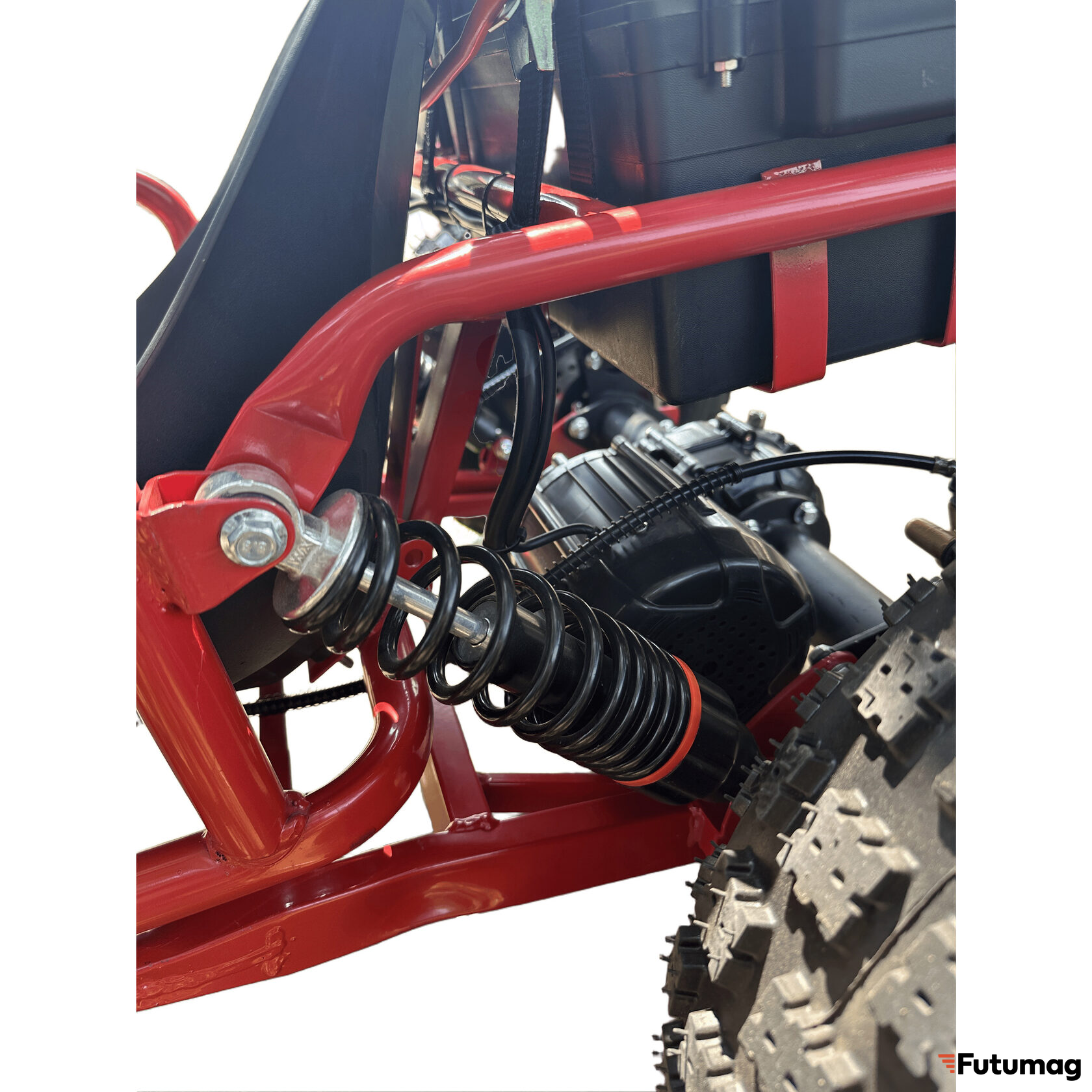 Skyboard Karting Krasnodar оборудован задним дисковым тормозом и ручным тормозом, что обеспечивает надежное торможение и безопасность во время поездок. Подвеска как спереди, так и сзади гарантирует комфортное движение по неровным поверхностям, позволяя вашему ребенку наслаждаться каждой поездкой.