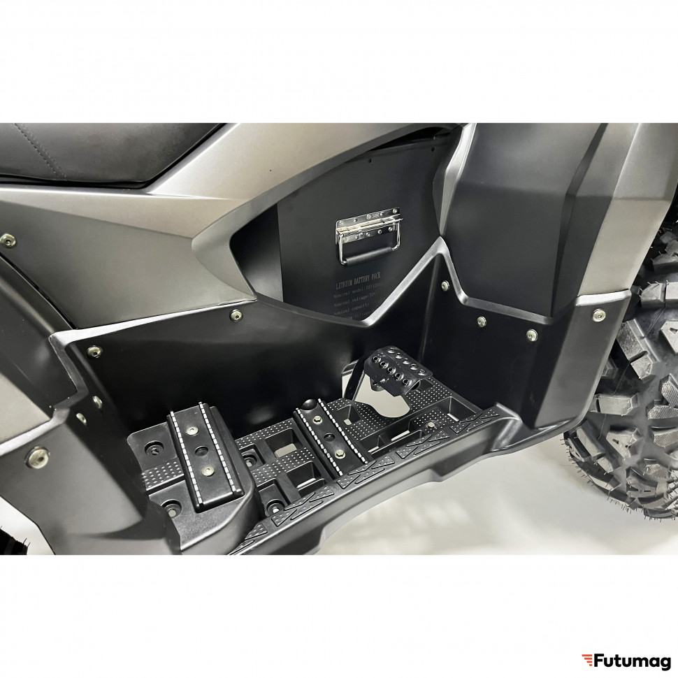 Электроквадроцикл работает на литиевом аккумуляторе с напряжением 72 В и ёмкостью 120 Ah, что позволяет проехать до 90 км на одном заряде. Аккумулятор имеет ресурс до 700 циклов, что делает его надежным и долговечным источником энергии для длительных поездок.