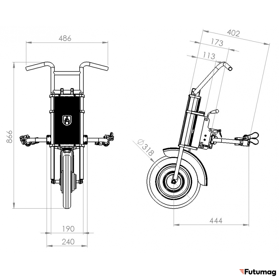 Электроприставка UNAwheel Maxi представляет собой автономное устройство, разработанное для оснащения инвалидных колясок электрическим приводом без необходимости замены самой коляски. Система крепления совместима с колясками всех типов, имеющими металлические трубы в конструкции рамы. В комплекте поставляются два типа адаптеров: Active для колясок активного типа со спортивной геометрией и Basic для стандартных базовых колясок, что гарантирует надежную фиксацию на любых моделях.