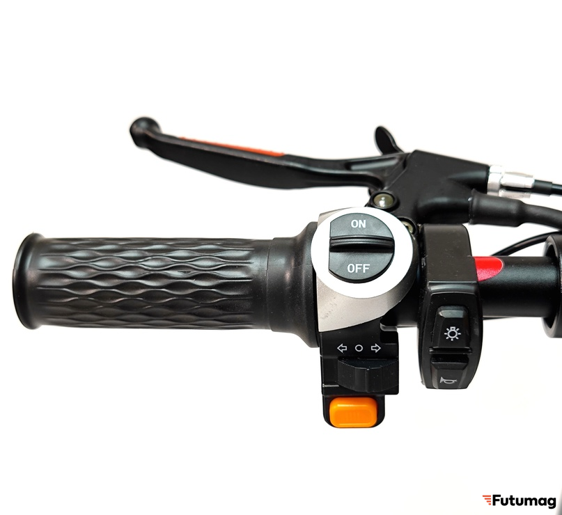 Передняя фара оснащена регулировкой угла наклона, позволяя направлять световой пучок оптимальным образом в зависимости от дорожной ситуации и роста пользователя. Это особенно важно при движении в темное время суток, когда правильное освещение дороги напрямую влияет на безопасность. Корпус фары защищен от вибраций и воздействия влаги.