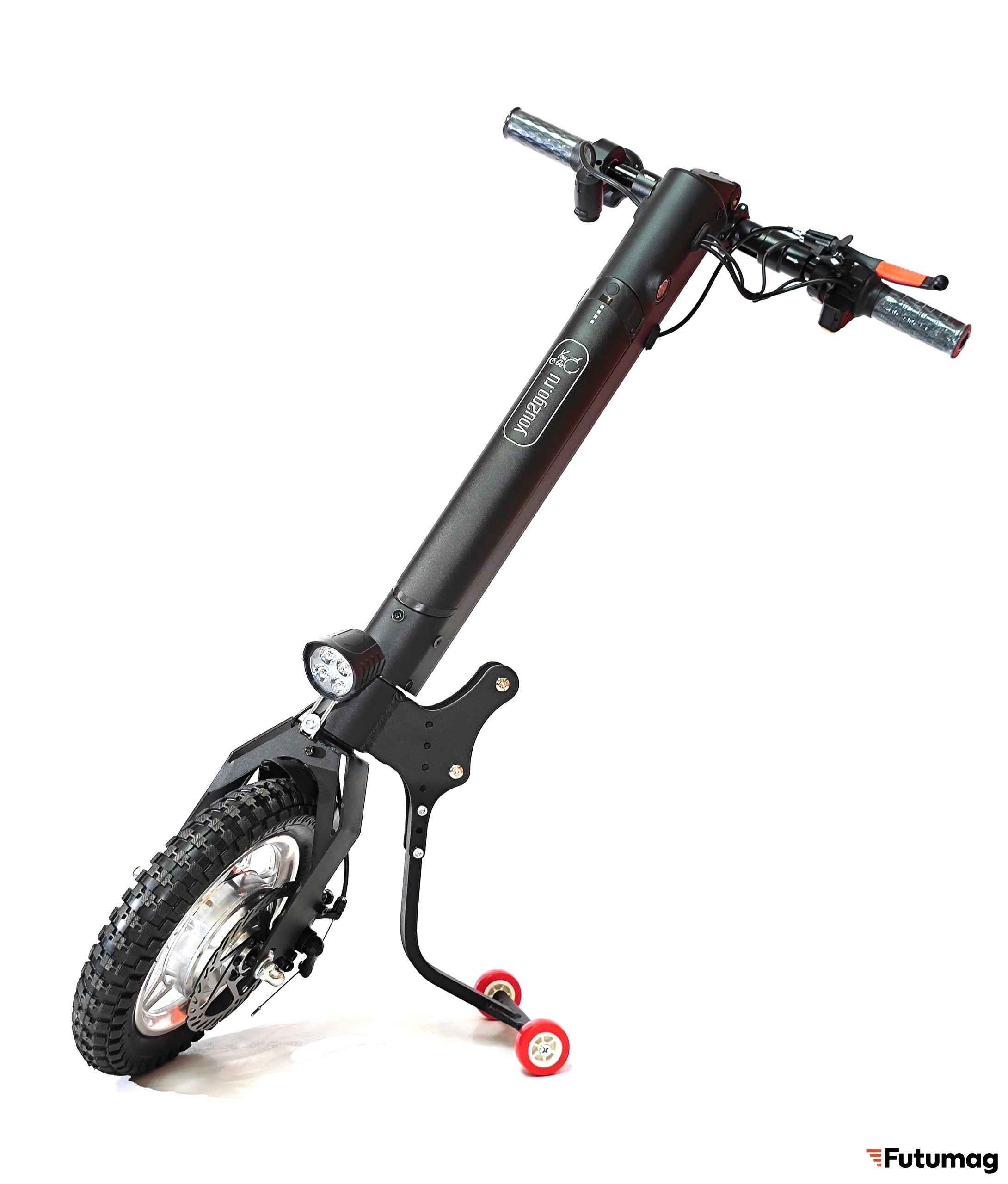 Электроприставка YouGo Премиум 12" оснащена колесами диаметром 12 дюймов с надувными пневматическими шинами, что обеспечивает повышенную проходимость по сравнению с моделями меньшего размера. Увеличенный диаметр колес позволяет легче преодолевать бордюры, трамвайные пути, глубокие выбоины и другие препятствия, характерные для городской среды и загородных дорог. Пневматические шины эффективно амортизируют неровности, снижая вибрацию и удары, передаваемые на коляску и пользователя.
