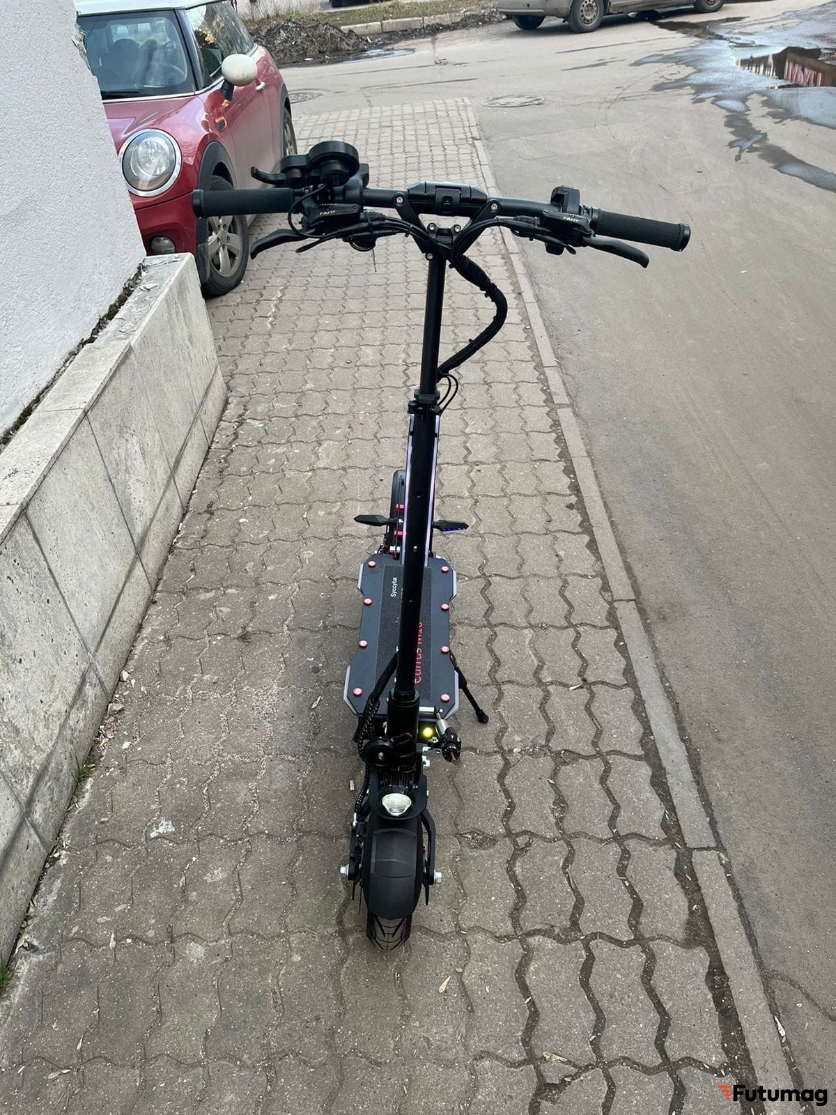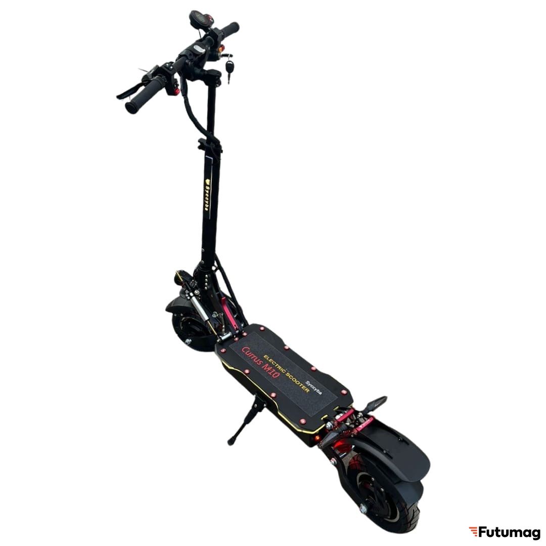На самокате Currus M10 установлены два 10-дюймовых 1200W мотор-колеса. С сумарной пиковой мощностью до 3000W. Это обеспечивает уверенное ускорение и экономию батареи при езде по прямой.