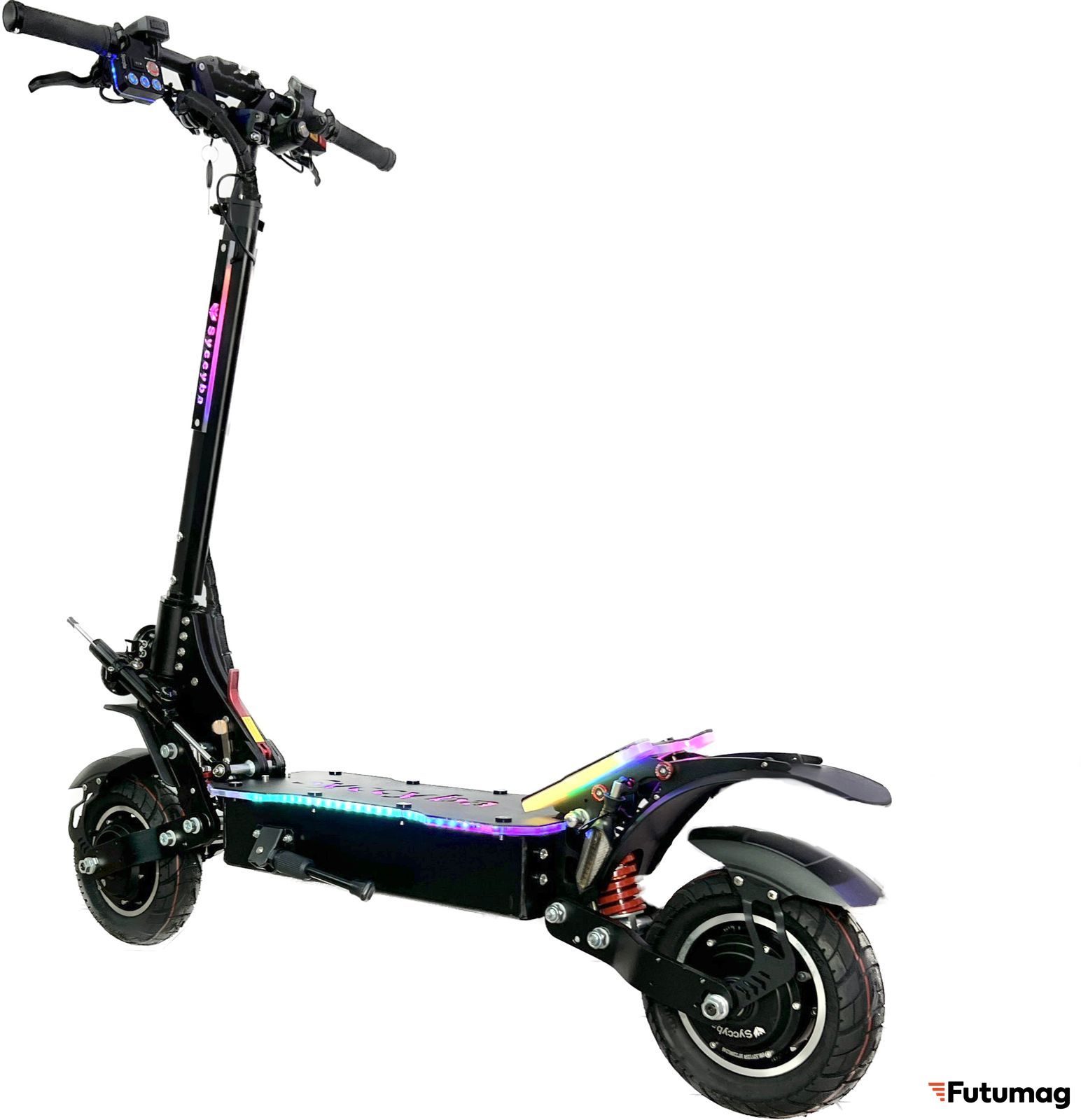 Электросамокат Currus M10 оснащен двумя мощными воздушными амортизаторами. Они выдерживают экстремальные нагрузки и надежные. При этом намного комфортнее обычных пружинных амортизаторов.