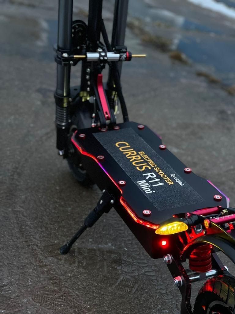 Электросамокат Курус сициба р11 мини оборудован двумя двигателями мощностью 3200W, за счёт чего можно разгоняться до 70 км/ч. Аккумуляторная батарея ёмкостью 52V 39,6Ah позволит проехать максимальное расстояние до 110 км без подзарядки. Для комфортной езды на дальние дистанции можно купить сиденье (покупается отдельно). Дисковая тормозная система готова сработать незамедлительно, по требованию райдера.