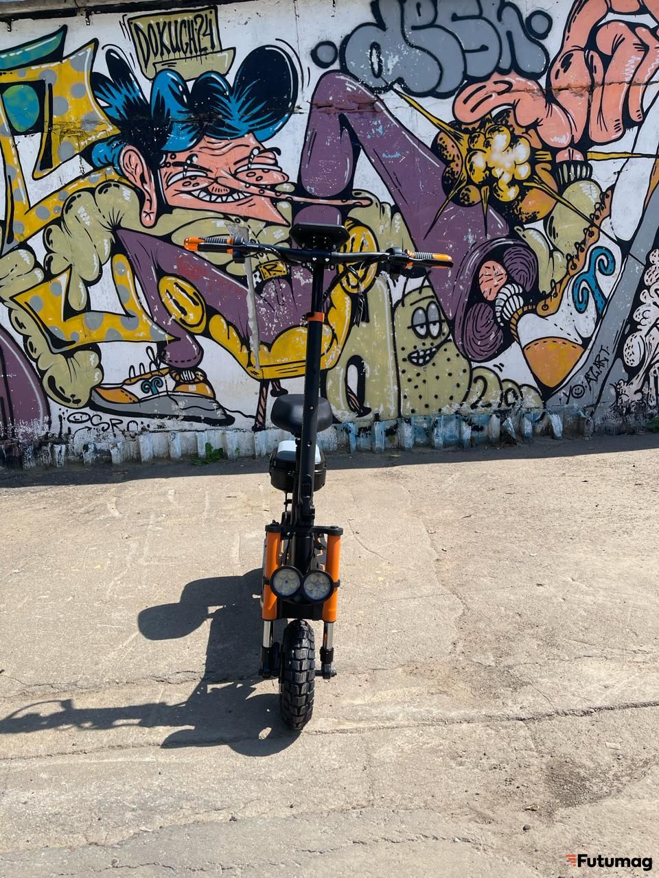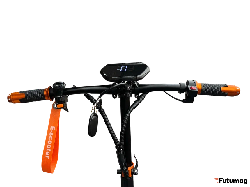 Дисплей на руле информирует о текущей скорости и уровне заряда батареи, позволяя пользователю контролировать состояние самоката во время поездки. Это особенно важно для тех, кто планирует дальние маршруты.