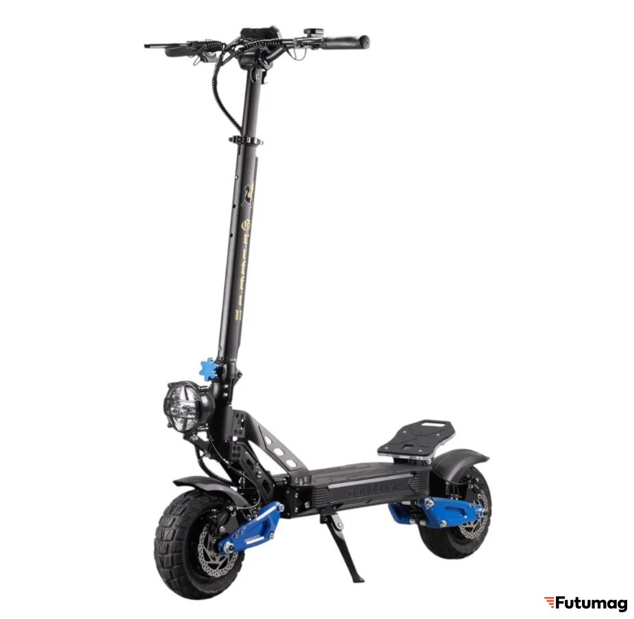 Высокая мощность двигателя и максимальная скорость 70 км/ч требуют надежной тормозной системы. Самокат оснащен эффективными тормозами, обеспечивающими уверенное замедление в любых условиях. Устойчивая конструкция и продуманная геометрия рамы гарантируют стабильность при движении на высоких скоростях.