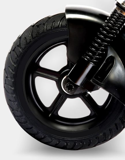 - Покрышка мотор-колеса бескамерная, но при этом достаточно мягкая, что придает комфорт при езде, переднее колесо надувное.