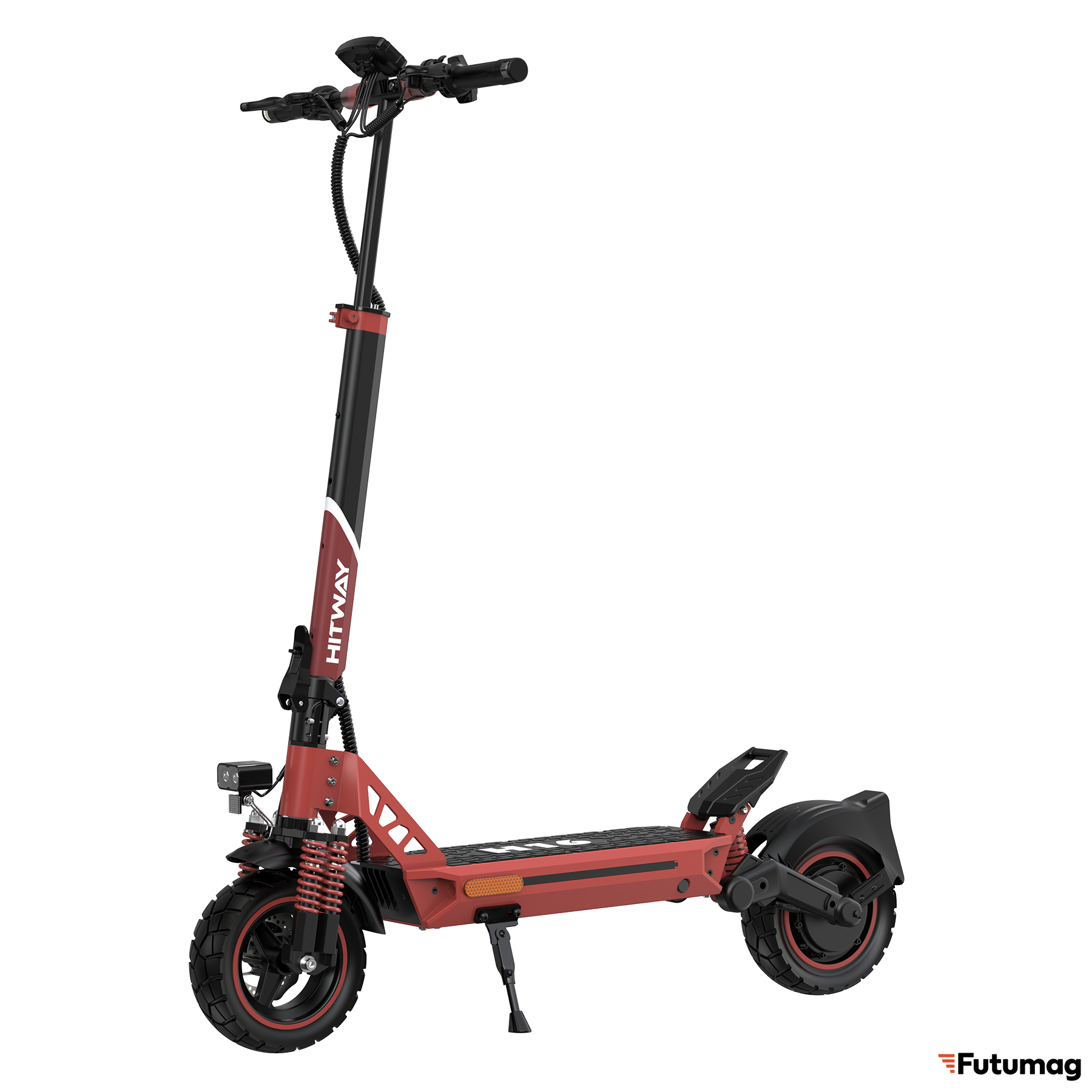 Электросамокат HITWAY H16 предлагает высокий уровень комфорта благодаря передней амортизационной вилке и большим 10-дюймовым шинам, которые обеспечивают отличное сцепление с дорогой. Дисковая тормозная система гарантирует надежное торможение, что особенно важно при движении на высокой скорости.
