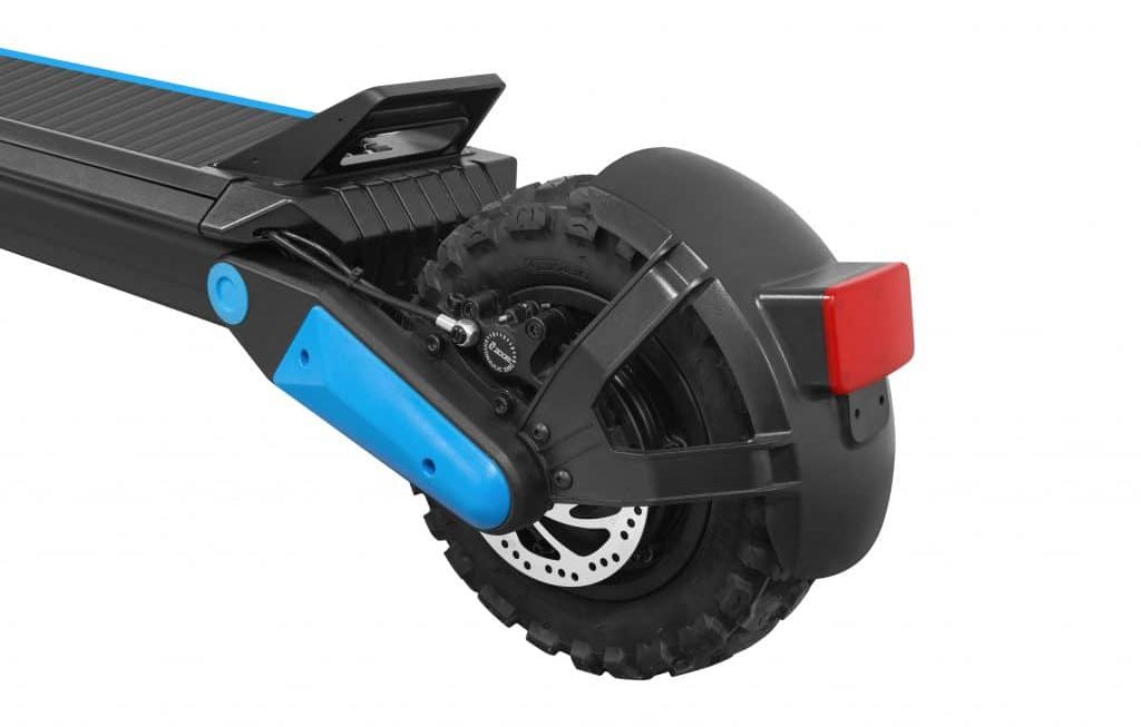 - За безопасность здесь отвечают дисковые тормоза с электронной системой распределения усилий. Самокат тормозит мягко и точно.