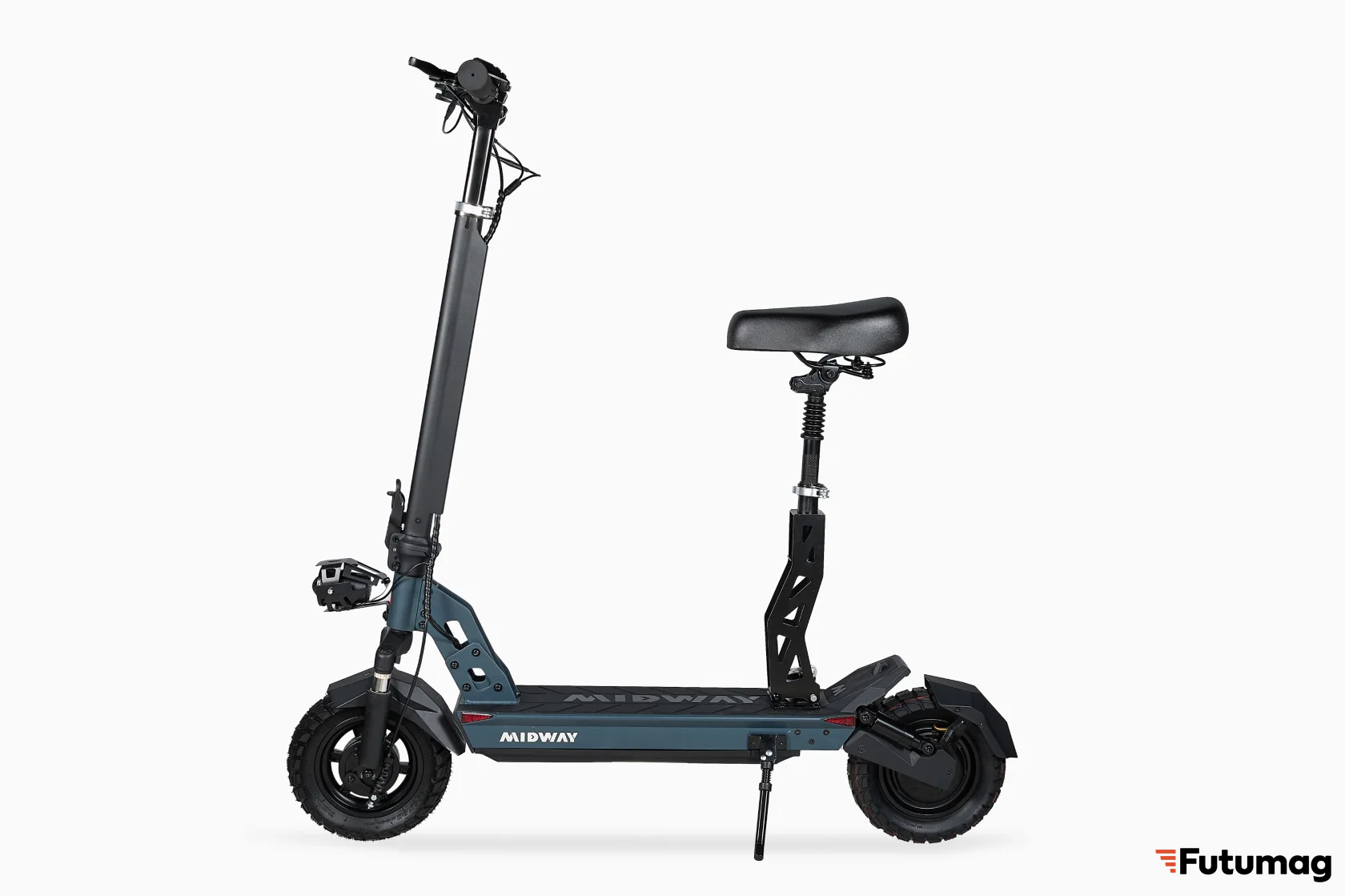 MIDWAY TANK Plus оснащён амортизацией спереди и сзади, что значительно повышает комфорт при езде по неровным поверхностям. Наличие сиденья добавляет удобства во время длительных поездок.