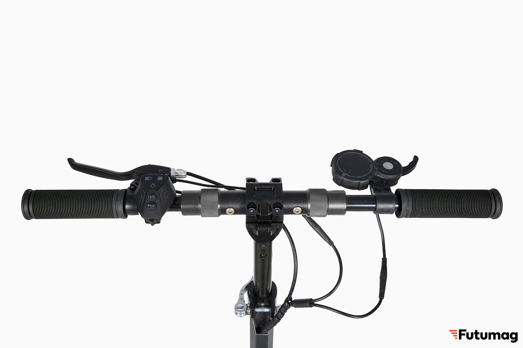 Рама выполнена из авиационного алюминия, что обеспечивает прочность и легкость конструкции. Преодолеваемый угол наклона составляет 15 градусов, а дорожный просвет (клиренс) равен 21 см, что делает его подходящим для различных городских условий.