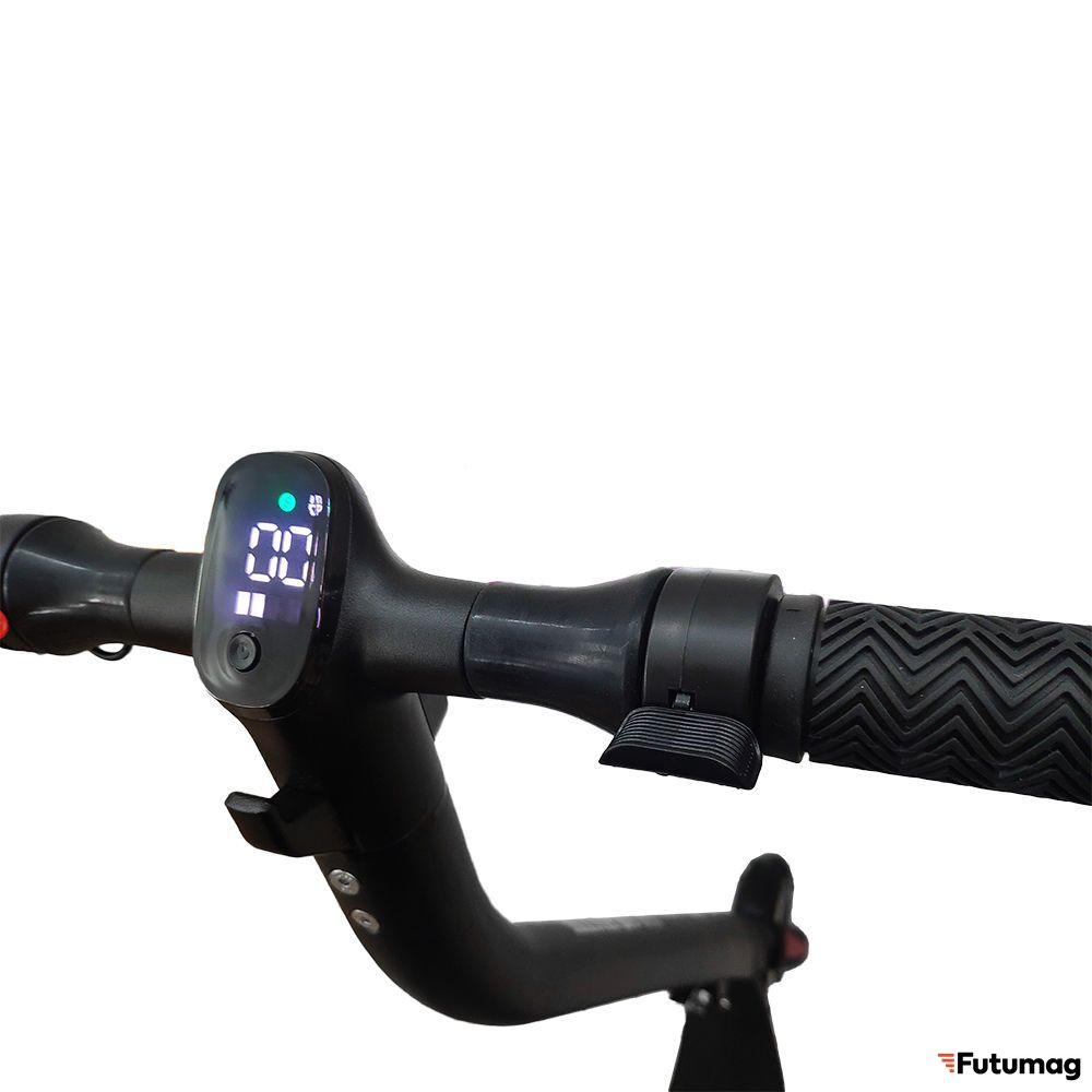На руле удобно располагаются курки газа и рекуперативного тормоза. Такая тормозная система подзаряжает аккумулятор при использовании во время поездки.