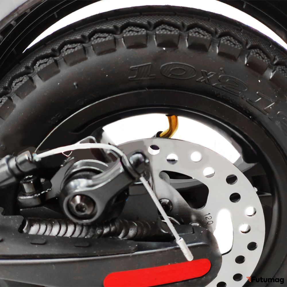 10-дюймовые накачиваемые покрышки сгладят неровности на поверхности, а увеличенный клиренс (15 см) позволит не волноваться о кочках и других препятствиях на дороге, потому что все важные детали будут целы.
