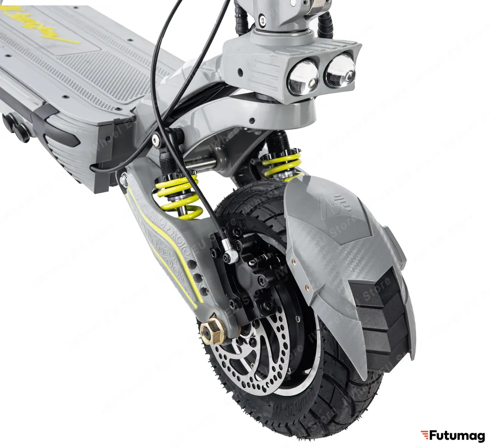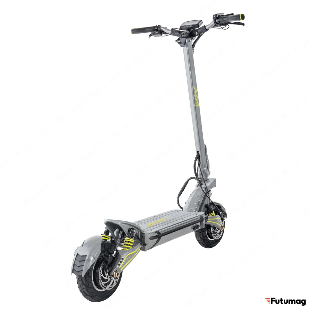 Mukuta 10 Plus оснащён надувными колесами диаметром 10 дюймов, что обеспечивает отличную амортизацию и комфорт во время езды. Гидравлические тормоза обеспечивают надежное торможение, а наличие амортизаторов повышает уровень комфорта на неровных поверхностях.