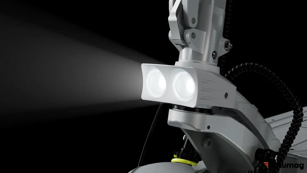 Электросамокат имеет все необходимые элементы для безопасной езды: фары и поворотники, что увеличивает видимость в темное время суток. Угол подъема в 25 градусов позволяет легко преодолевать небольшие подъемы, что делает его универсальным для городских и загородных условий.