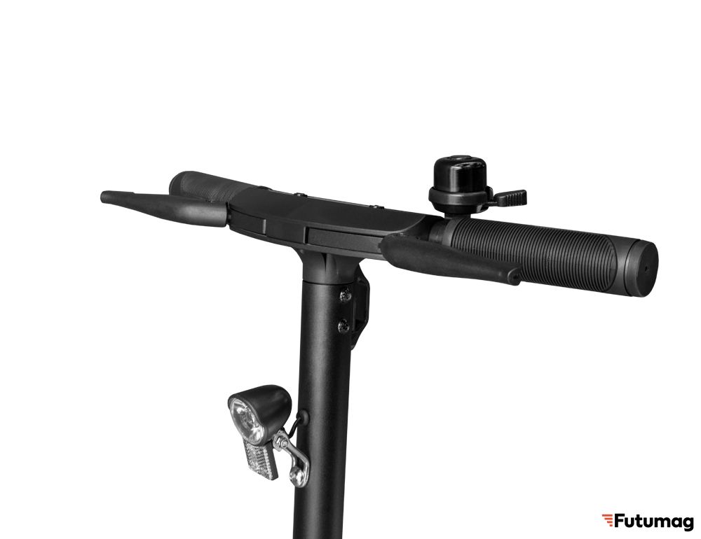 - Складывание рамы электросамоката происходит всего в одно действие посредством кнопки, расположенной на передней части рулевой колонки.