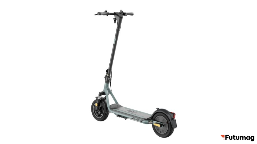 Колеса диаметром 10 дюймов обеспечивают комфортное движение по городским дорогам и позволяют преодолевать небольшие неровности без потери скорости. Увеличенный диаметр по сравнению с компактными моделями повышает проходимость и снижает вибрацию на руле. Передний амортизатор дополнительно сглаживает удары, делая поездку более комфортной даже на булыжной мостовой.