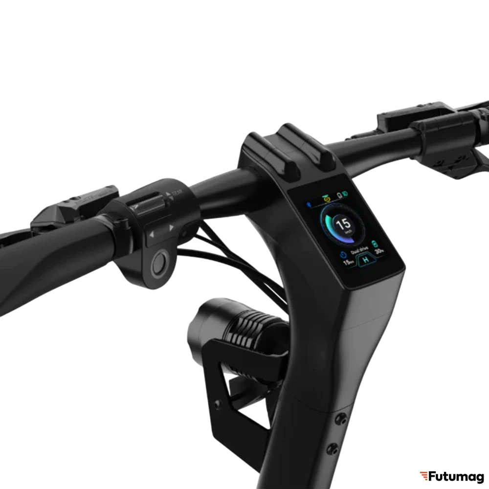 Многофункциональный цветной дисплей позволяет удобно отслеживать скорость, уровень заряда аккумулятора и другие важные параметры, что делает управление самокатом более простым и информативным. Линзованная фара обеспечивает отличную видимость в темное время суток, что дополнительно повышает безопасность во время поездок.