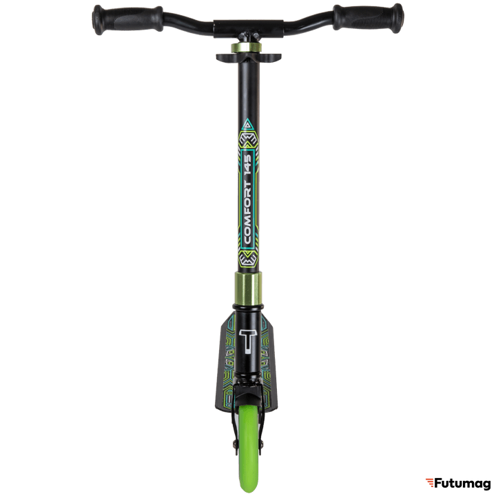 Высота руля регулируется в диапазоне от 72 до 94 см, предусмотрено три фиксированные позиции. В 2022 году мы изменили форму и материал грипс (рукояток) - теперь они изготавливаются из мягкой резины. Уменьшена ширина руля.