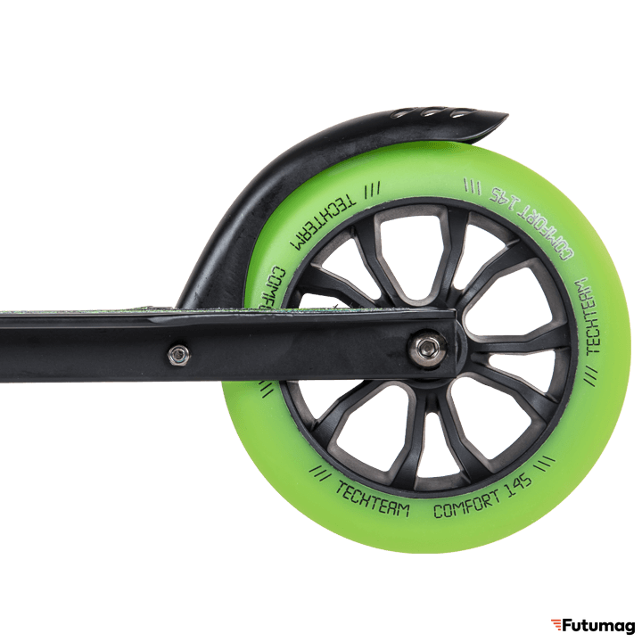 Колеса самоката выполнены из высококачественного прозрачного полиуретана, имеют диаметр 145 мм и ширину 30 мм.
