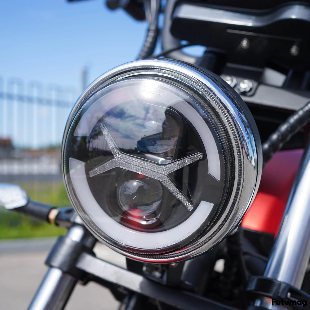 Под эффектным капотом скрывается не менее впечатляющая техническая начинка. Электродвигатель номинальной мощностью 3000 Вт (пиковая — значительно выше) обеспечивает этот чоппер уверенной динамикой. Вы почувствуете мощный, ровный подхват с самого начала, который легко выведет вас на крейсерскую скорость и позволит разгоняться до 65 км/ч, с легкостью обгоняя городской транспорт и чувствуя себя уверенно на загородной трассе. Ключевое преимущество электромотора — мгновенная отдача крутящего момента и отсутствие необходимости переключения передач: просто добавьте «газа» и наслаждайтесь плавным, но стремительным ускорением.