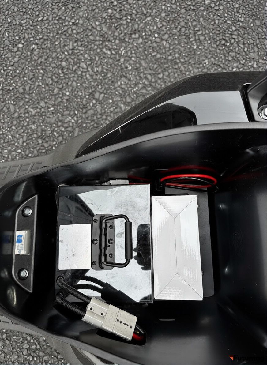 Аккумуляторная батарея емкостью 60 А·ч и напряжением 72 В обеспечивает запас хода до 150 км на одном заряде. Особенностью модели является наличие места для установки второй аккумуляторной батареи, что позволяет увеличить пробег до 300 км без подзарядки. Время полной зарядки от бытовой сети составляет 6-8 часов, новый переходник для зарядки делает процесс более удобным.