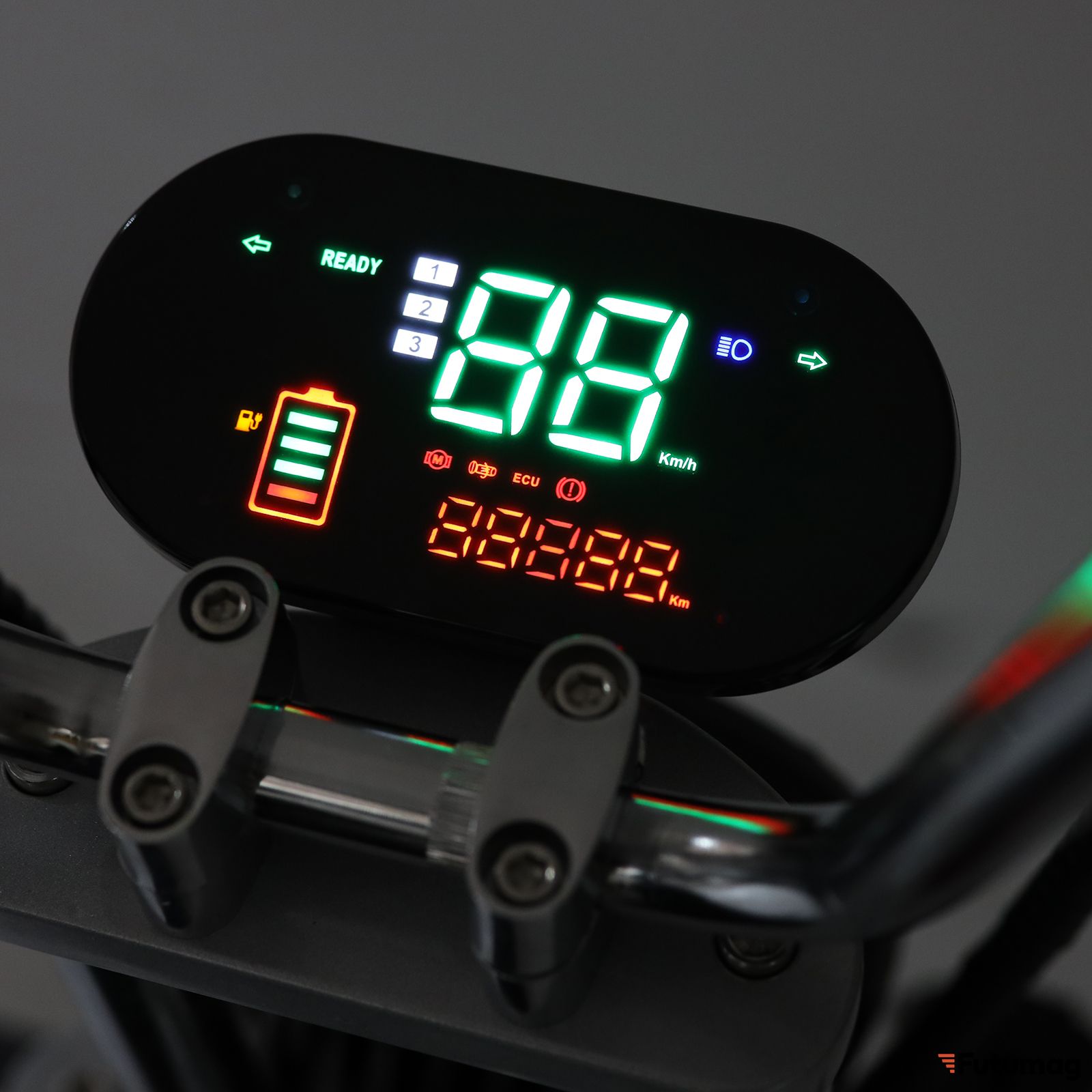 Максимальная скорость GT X6 Pro Mini достигает 45 км/ч, что делает его подходящим для городских условий. Аккумулятор Li-ion на 48V и 23Ah обеспечивает запас хода до 70 км, что позволяет совершать длительные поездки без частой подзарядки.