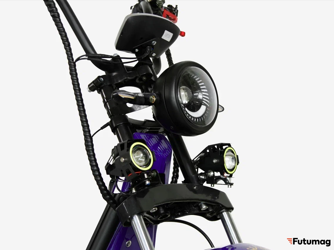 IKINGI M7 PRO TRIKE также оснащен мощной фарой, что значительно увеличивает видимость в темное время суток и обеспечивает дополнительную безопасность. Удобное сиденье и наличие корзины делают его комфортным для длительных поездок и удобным для перевозки вещей. Кроме того, наличие зеркал позволяет водителю лучше контролировать ситуацию на дороге.