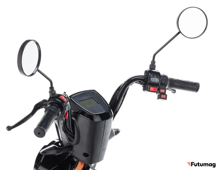 Электроскутер оснащен барабанными тормозами, которые обеспечивают надежное и эффективное торможение. Это особенно важно в условиях городского движения. Мощная фара обеспечивает отличную видимость в темное время суток, что повышает безопасность на дороге.