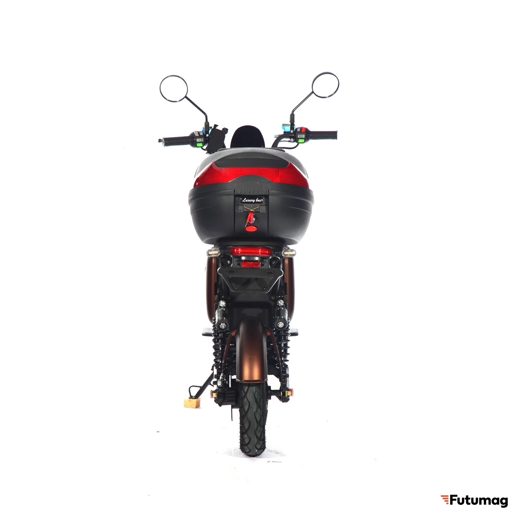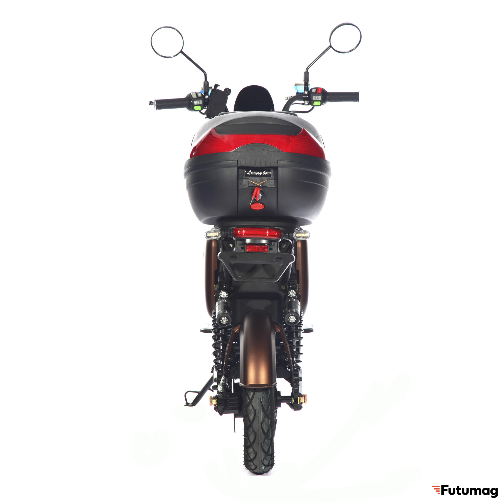 Скутер оснащен LED-дисплеем с показанием вольтажа, аварийным сигналом и встроенной передней LED-фарой, что обеспечивает безопасность в темное время суток. Передние и задние LED-поворотники, а также зеркала заднего вида повышают видимость на дороге.
